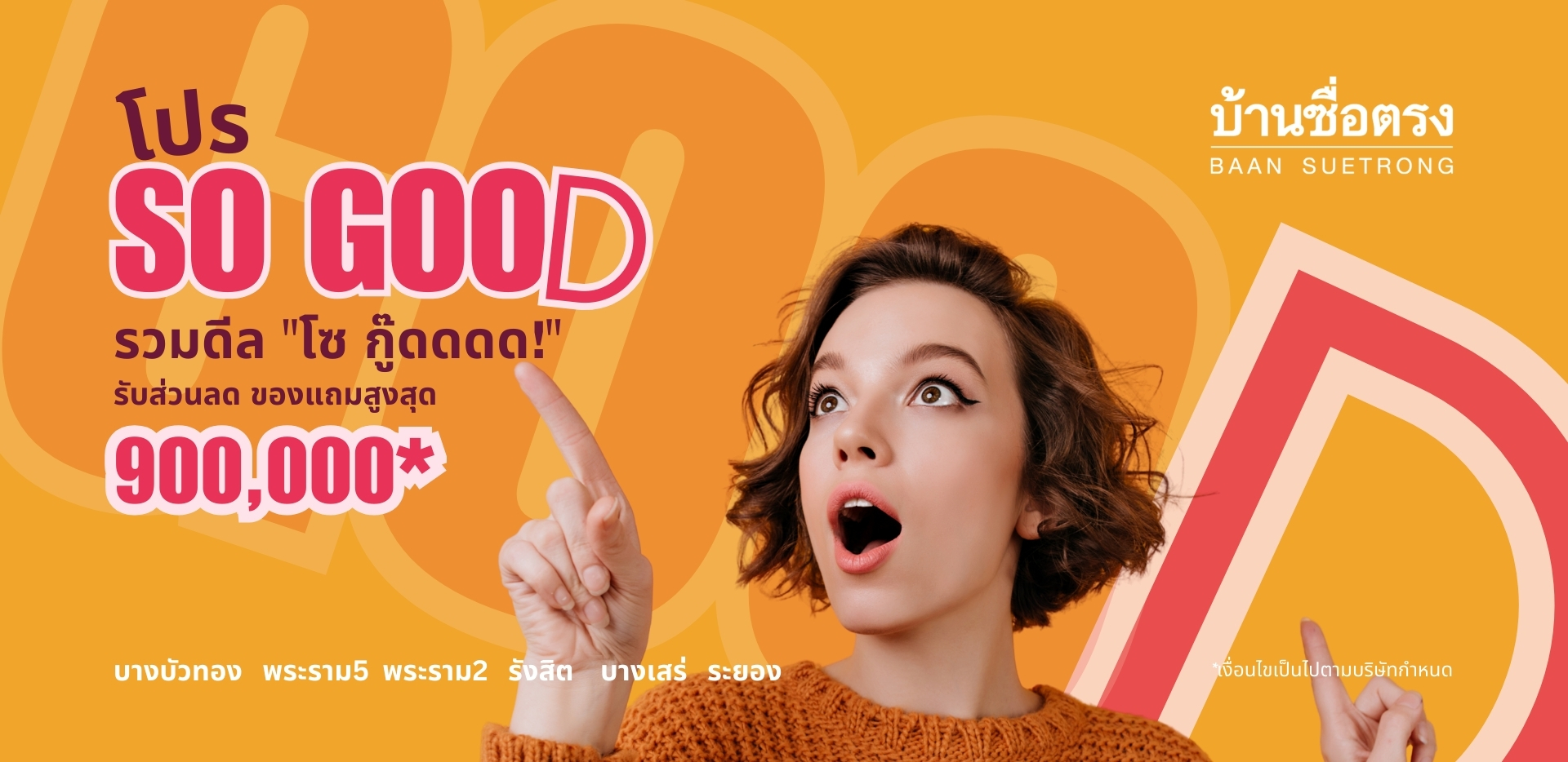 😊“ซื่อตรง So Good” 🎉รวมดีล โซ กู๊ดดดด! รวมมูลค่าสูงสุดกว่า 900,000 บาท* ✅ รับ! ส่วนลดสุดคุ้ม 😍✅ ฟรี! ของแถมสุดจึ้ง 🤩✅ ราคาดีเท่า Pre-sale 😁 พร้อมมาตรการรัฐ ลดภาระให้ซื้อบ้านง่ายสุดๆ ✅ ปลดล็อก LTV