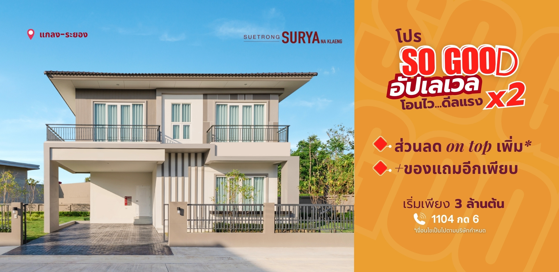 ซื่อตรงเซอร์ญ่า ณ แกลง “SUETRONG SURYA ” วิลล่า 2 ชั้น เริ่ม 60 ตร.ว. พร้อมส่วนกลางที่ครบครันสุด 1 เดียวใน อ.แกลง จ.ระยอง!